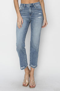 RISEN Full Size High Waist Distressed Cropped Jeans