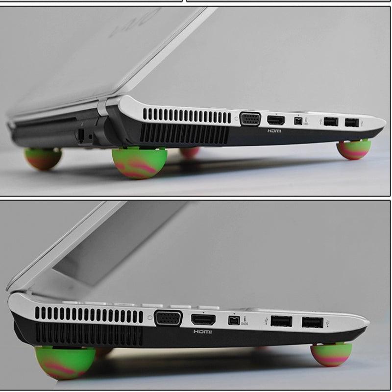 Enhance your laptop's cooling with our silicone laptop cooling ball foot pad. Designed for 13.3 to 17.3-inch devices, this portable anti-skid pad elevates your laptop for improved airflow while providing stable support. Featuring four hemispherical designs, it helps tilt your laptop for better ergonomics, making it ideal for gaming and extended use.