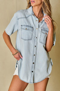 Slit Snap Down Short Sleeve Denim Top