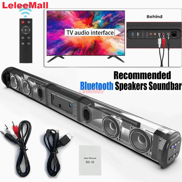 Upgrade your audio experience with the Soundbar Blaster Bluetooth speaker. This subwoofer-equipped soundbar delivers powerful bass and crystal-clear sound for your TV, enhancing movie nights and gaming sessions. Wireless Bluetooth connectivity allows for easy pairing with devices, offering ultimate convenience and flexibility for home theater setups.