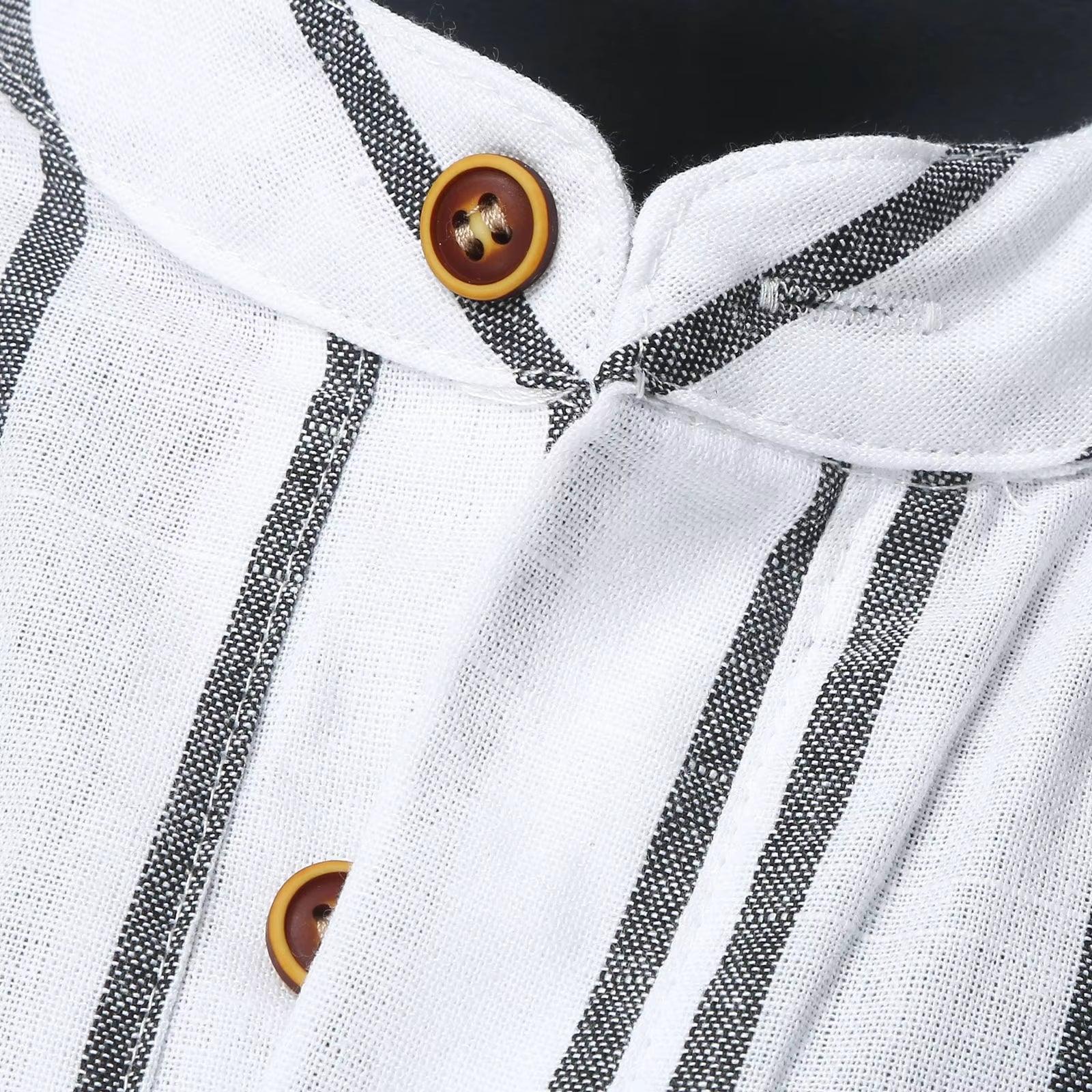 Men's Casual Stripe Stand Collar Shirt - Short Sleeve Summer Blouse Top
