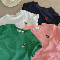 This Summer Korea Baby Boys Suit features a stylish T-shirt with a charming embroidered bear badge, making it a perfect choice for your little one. Made from soft, breathable fabric, this set is designed for comfort and style during warm weather. The playful embroidery adds a fun touch to the classic tee, while the suit is perfect for casual outings, playdates, or family gatherings. Available in various sizes, it’s a must-have for your baby boy’s summer wardrobe.