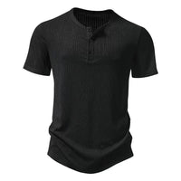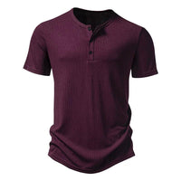 Summer Retro Solid Color Three-Button Henry Collar Short Sleeve T-Shirt Men's T-Shirt