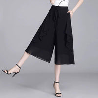 Elevate your spring and summer wardrobe with our tie-strap drape chiffon wide-leg pants. Featuring a loose slim fit and stylish seven-point design, these casual pants offer effortless elegance for any occasion.