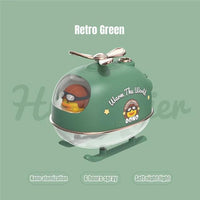 Elevate your space with the USB Mini Helicopter Air Humidifier, a unique and playful aroma diffuser perfect for your home or office. This ultrasonic mist maker releases a fine, soothing mist while dispersing your favorite essential oils to create a relaxing environment. Equipped with a warm light, this mini helicopter-shaped humidifier also adds a comforting glow, making it ideal for both day and night use. Compact and portable, it's the perfect blend of function and fun décor.