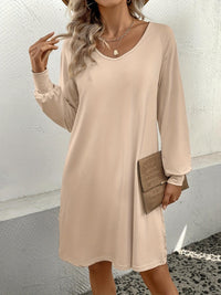 V-Neck Raglan Sleeve Knee Length Dress
