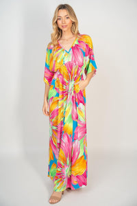 The Printed V-Neck Maxi Dress with Pockets is a versatile and stylish choice for any occasion. Featuring a flattering v-neckline and a flowy maxi length, this dress offers a chic and effortless silhouette. The addition of pockets adds a practical and functional element to the dress, perfect for storing small essentials. The eye-catching print adds a touch of personality and flair to your look, making a statement wherever you go. Dress it up with heels and statement jewelry for a special event, or pair it with sandals for a more laid-back vibe. Stay comfortable and fashionable with the Printed V-Neck Maxi Dress with Pockets, a must-have addition to your wardrobe for versatile and on-trend styling.