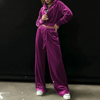 Elevate your loungewear with our women’s casual pants set featuring a hooded sweatshirt and gold velvet sports pants. This luxurious set combines comfort and style, making it perfect for lounging at home or casual outings. The soft velvet fabric feels great against the skin, while the stylish design keeps you looking chic. Pair it with your favorite sneakers for an effortlessly trendy look that shines!