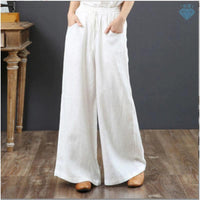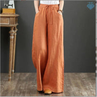 Women's High Waist Wide Leg Pants - Cotton Linen Casual