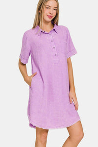 Zenana Washed Linen Raw Hem Dress with Pockets